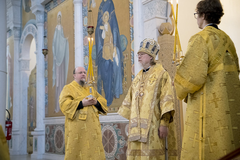 Архипастырю сослужили секретарь епархиального управления священник Максим Политов и духовенство Троицкого собора.